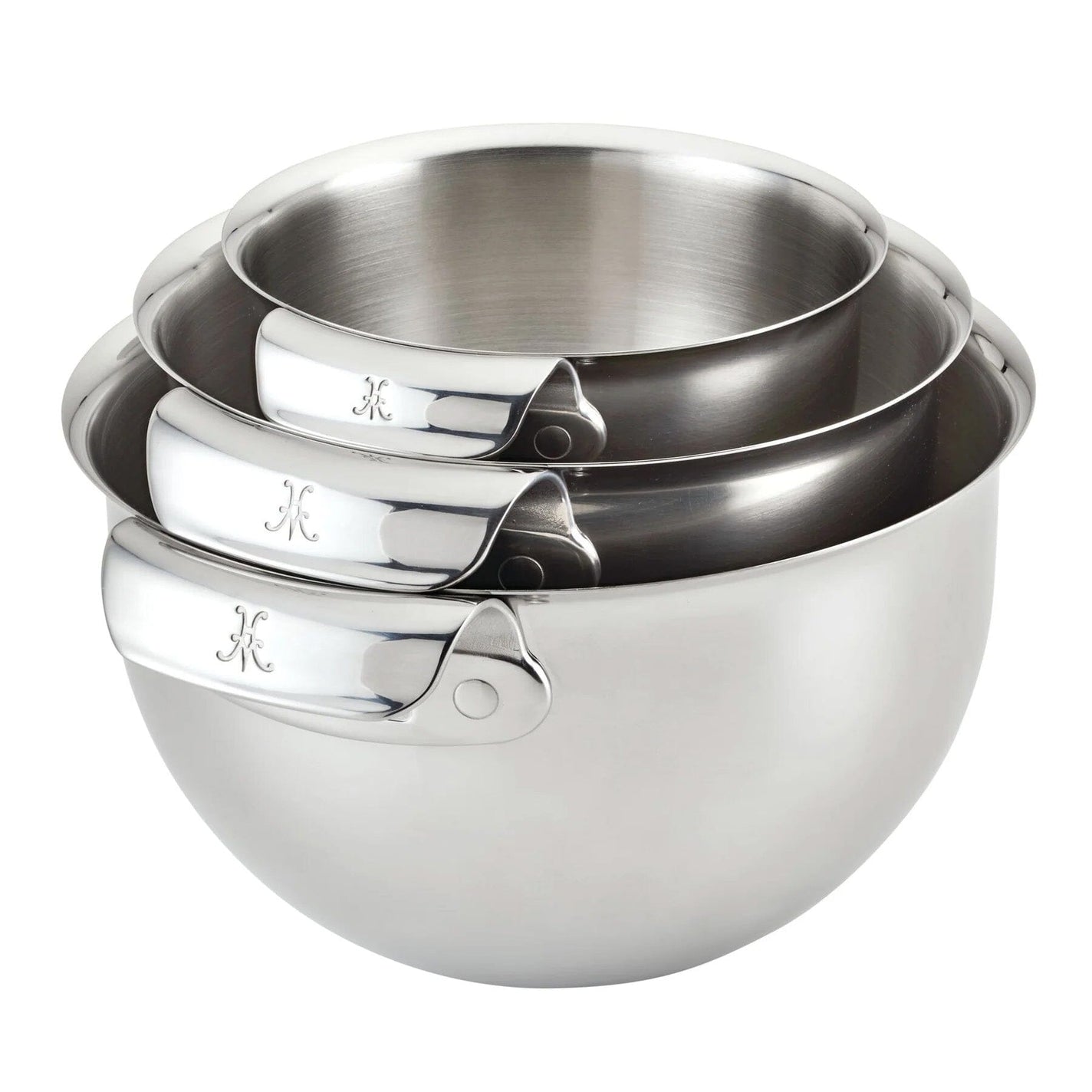 Round out your culinary arsenal with this set of 1.5qt, 3qt, and 4.75qt heavy-gauge stainless steel mixing bowls.